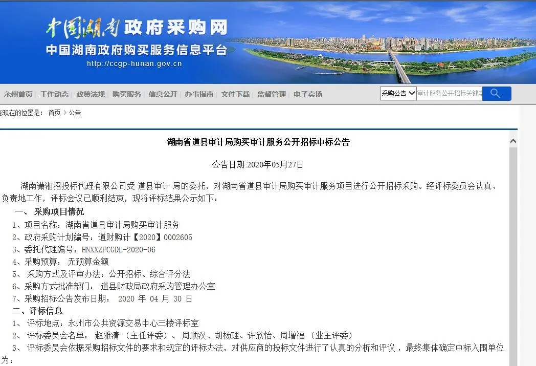 2020年5月27日,我司收获入围喜讯,成功入围湖南省永州市道县审计局中介机构库。