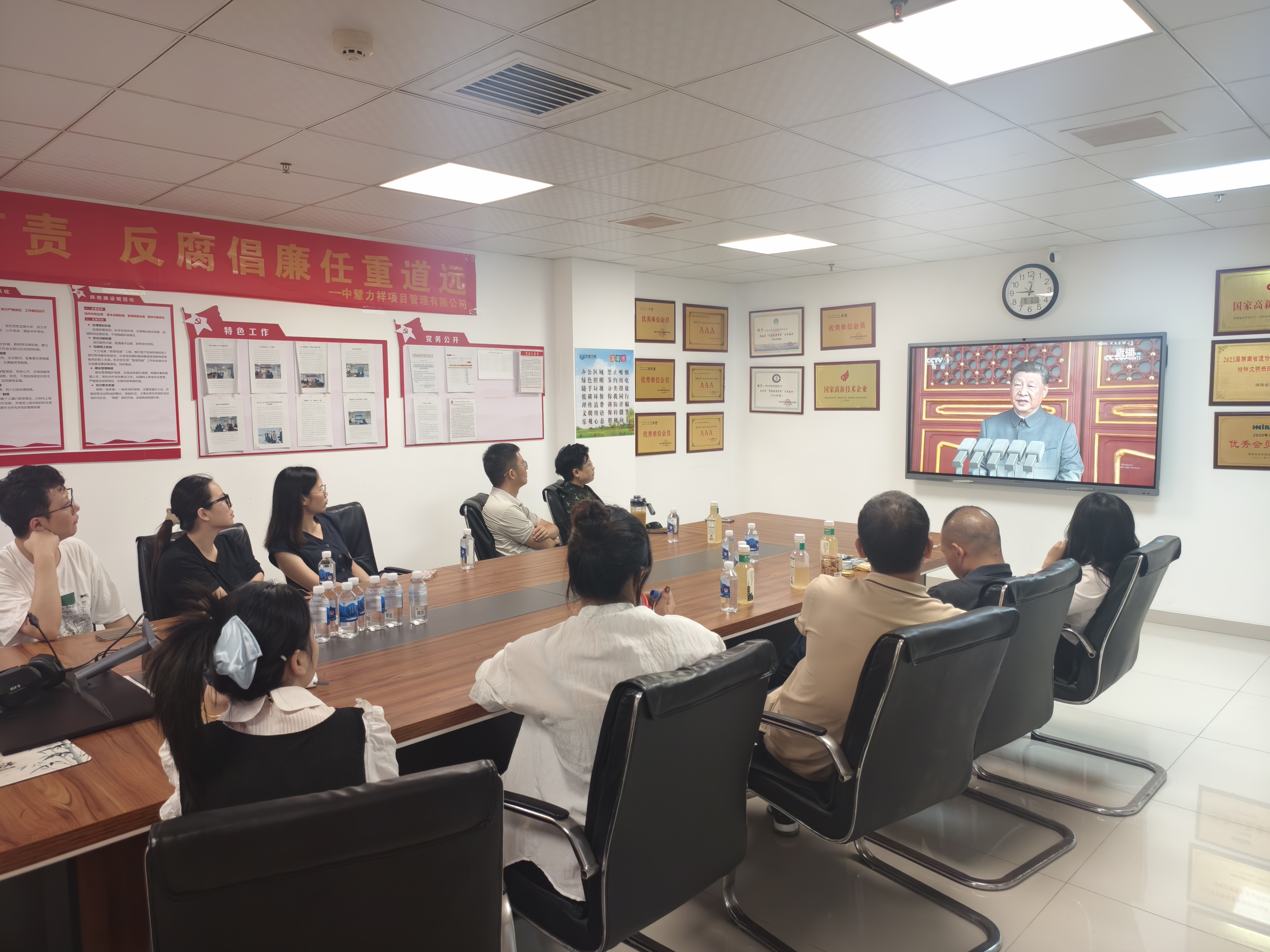 为铭记伟大历史胜利,弘扬伟大抗战精神,9 月 3 日上午,中慧力祥项目管理有限公司党支部牵头组织全体党员干部职工集中收看纪念中国人民抗日战争暨世界反法西斯战争胜利 80 周年阅兵盛典直播,各项目部通过线上同步转播参与活动,共同见证国之盛典,凝聚奋进力量。